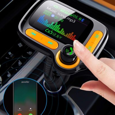 TSNAM Bluetooth FM Transmitter Car Adapter,Support Wireless Handsfree Call and MP3 Music/APP Audio Play,1.8″ Color Screen,3 USB Charger,3.5mm AUX Port,Compatible with iPhone,iPad,Samsung and More