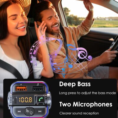 Bluetooth 5.3 FM Transmitter for Car, Dual Micphone Hands-Free Calls Wireless Radio Receiver, PD 30W & QC3.0 Fast Car Charger Adapter