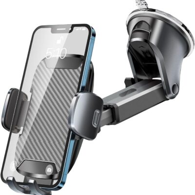 Phone Holder Mount for Car [Strong Suction] Hands-Free Universal Cell Phone Mounts for Dashboard/Windshield, 360° Rotation Extendable Mobile Car Holder for Smartphones
