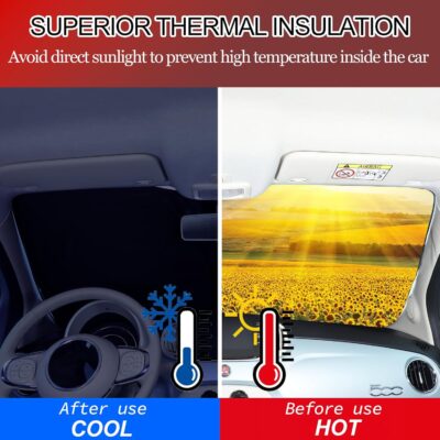 Front Windshield Sun Shade Compatible with Fiat 500 2010-2024 Car Windshield Sun Shade Foldable Sun Shield UV Protection Auto Accessories (Front Windshield Memory Steel Wire)