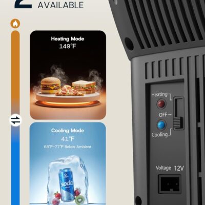 Upstreman Electric Cooler & Warmer 10QT(9L) Capacity, Thermoelectric Car Fridge with Shoulder Strap, Plug In 12V DC Portable Car Food Warmer and Cooler for Travel, Camping, Picnic-AR09