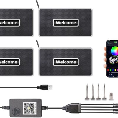 Car LED Lights for Floor Mats, Interior Car LED Strip Lights with App Control, Luminous Ambient Neon Lighting Kits, Universal Automotive Floor Mats (Rhombic – USB, 4)