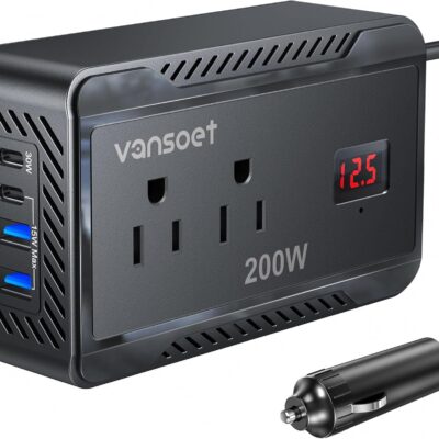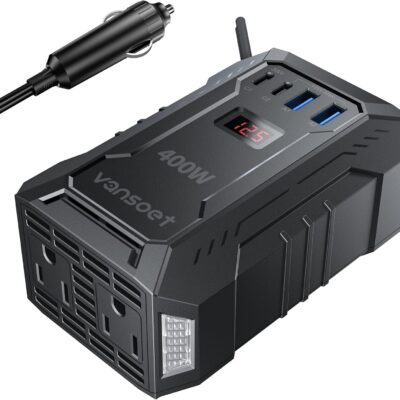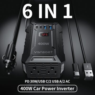 400W Car Power Inverter PD 30W Fast Charging,Vansoet DC 12V to AC 110V Car Inverter Aluminum Housing,USB C PD30W and USB-A QC 18W Port – Dual AC Plug Adapter Outlet for Vehicles,Laptop,Phones,Camera