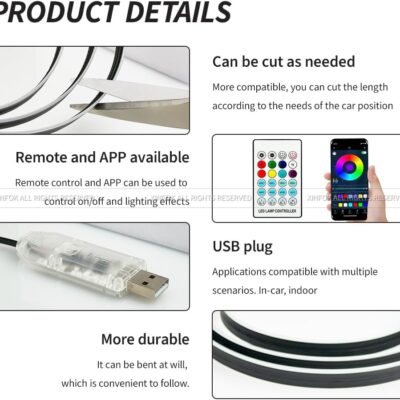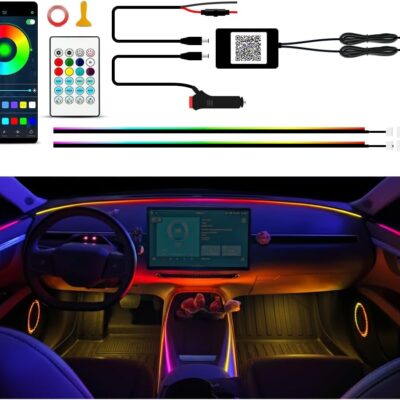 Ambient Lighting Car Led Lights Interior,43.3’’ USB Powered Acrylic Neon Flexible Strip Fiber Optic LED Ambient Lighting Kits with Remote APP, RGB Music Lights Sync for Inside car Dashboard