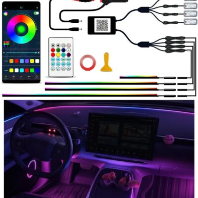 Ambient Lighting Car Led Lights Interior Kit,4 in 1 Acrylic Led Lights for Car Interior Decorations,DIY Fiber Optic Music Sync RGB Neon Strip Ambiance Footwell Lighting with Wireless APP