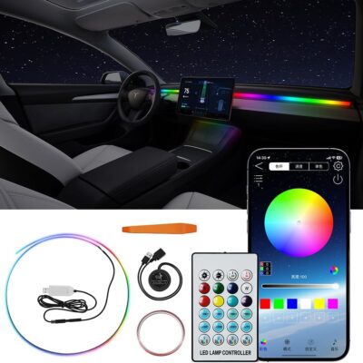 for Tesla Model 3 Y LED Interior Lights Ambient Lighting, Tesla Model 3 Y RGB LED Neon Light Kits, Tesla Model 3 Y Accessories 2021 2022 2023, DC 12V