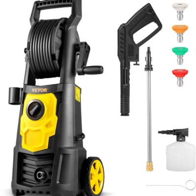 VEVOR Electric Pressure Washer, 2000 PSI, Max 1.65 GPM Power Washer w/ 20 ft Hose & Reel, 4 Quick Connect Nozzles, Foam Cannon, Portable to Clean Patios, Cars, Fences, Driveways, ETL Listed