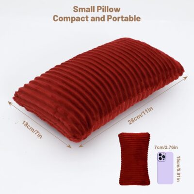 vocheer Small Pillow 11″ x 7″, Mini Travel Pillows for Sleeping, Tiny Pillow for Neck, Wrist, Lumbar, Knee, Pets, Multifunctional Machine Washable Pillows for Bed, Office, Travel, Camping, 1pc-Red