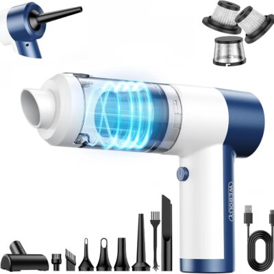 Car Vacuum Cleaner Cordless, 4 in 1 Portable Vacuum Cleaner 16000PA High Power Air Duster & Air Blower & Pump, Rechargeable Handheld Vacuum with Brushless Motor, Multi-Nozzles for Car, Home, Office