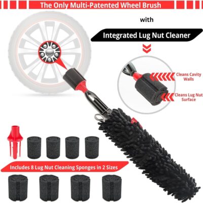 Wheel Cleaning Brush Car Detailing Kit – Rim Brush, Lug Nuts and Wheel Cleaner Brush Car Wash Kit -Tire Brushes for Cleaning Rims – Car Cleaning Supplies and Rim Cleaner Brush Set