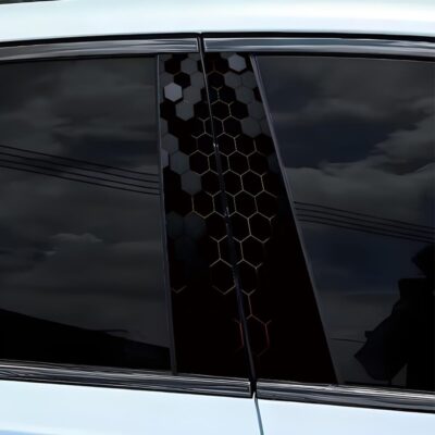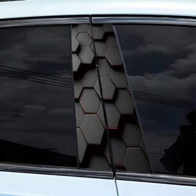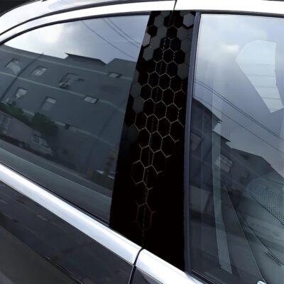 2pcs 3D Honeycomb Graphics Vinyl Car Stickers, Waterproof Sun Protection Scratch Cover B-Pillar Stickers, Personalized DIY Vehicle Door Pillar, Long-Lasting Decor Auto Accessory (Black)
