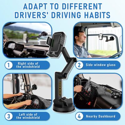 Truck Phone Holder Mount,Car Phone Holder,Dashboard Windshield Phone Holder 16.9 inch Long Arm,Super Suction Cup Compatible with Pickup Truck,Commercial Truck and All Phone
