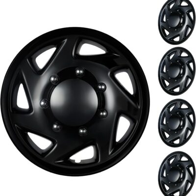 16 Inch Hubcaps Compatible with 1992-2014 Ford E150 E250 E350 Van 8 Lug Factory Steel Wheel, Snap-On Wheel Covers, Durable ABS Replacement Hubcaps Set of 4 (Black)