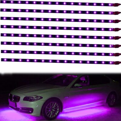 XT AUTO Purple 12v 15 Led 30cm Car Motorcycle Flexible Waterproof Underbody Light Strip String Lights for Festive Decoration Pack of 20