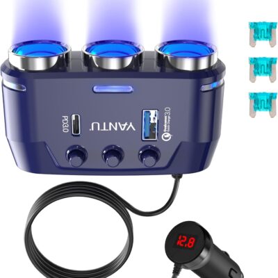 YANTU QC3.0&PD 40W Cigarette Lighter Adapter, 3-Socket 140W Cigarette Lighter Splitter with 12v USB Outlet,Car Charger Adapter with Double/Dual/USB C Charger Multi Port/Plug Outlet for Car Devices