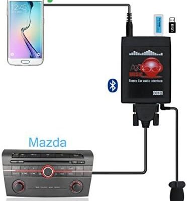 Bluetooth Car Kit, Car Stereo USB AUX 3.5mm Wireless Hands-Free Bluetooth Adapter for Mazda RX8 3 5 6 CX7 MPV MX-5 Tribute
