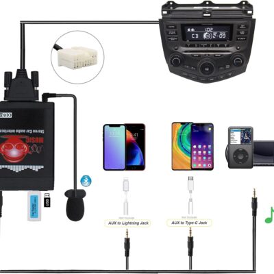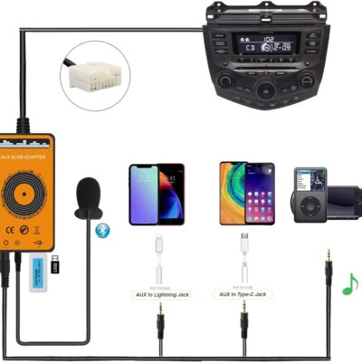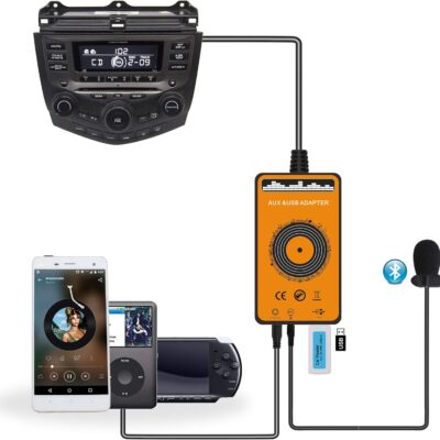 Car Bluetooth Transmitter with USB & AUX Input Interface for Honda Accord 2003-2012, Civic 2006-2014, CR-V 2004-2014, Odyssey 2005-2010, Pilot 2006-2014, TSX 2004-2011, MDX 2005-2006