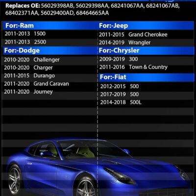 Pre-Programed Tire Pressure Sensor for:-Dodge Journey 2011-2020 Charger 2010-2020 Challenger, for:-Jeep Wrangler 2014-2019, for:-Ram 1500 2500, TPMS Sensors 56029398AB 68241067AB 433MHz (4)