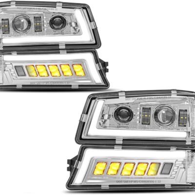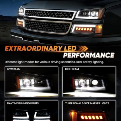 Z-OFFROAD LED Headlights Assembly DOT Approved with DRL Turn Signal Hi/Low Sealed Beam Compatible with 03-06 Chevy Silverado Avalanche (Sequential Turn Signal + Clear Side Marker) – Chrome