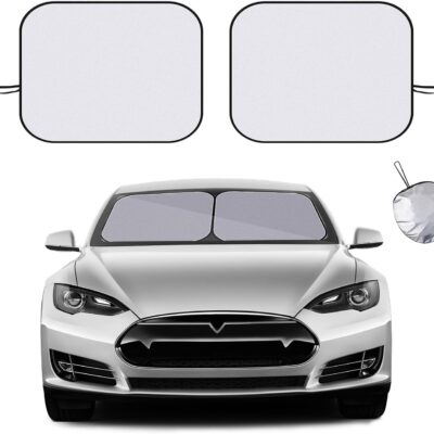 Ziciner 2 PCS Car Windshield Sun Shade, Auto Sun Heat and UV Rays Blocker, 28″×31″ Foldable Automotive Front Window Sunshade Protector, Universal Vehicle Interior Accessories (Silver-M)