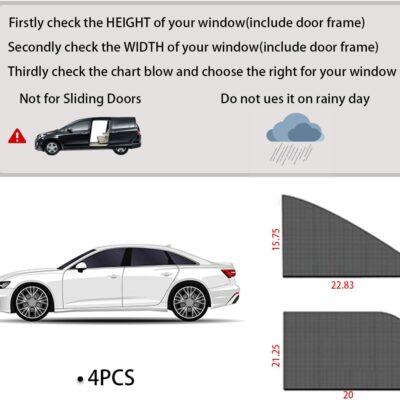 Ziciner Car Window Shade, 4 Pcs Auto Side Front Rear Window Sun Shades, Heat Block and UV Rays Protection, Breathable Mesh Privacy Protection Curtain, Universal Fit Most Car (Car Front&Back 4Pcs)