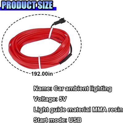 EL Wire Car Interior LED Strip Lights, 5V 16FT Neon Light Strip with Sewing Edge, USB Electroluminescent Car Interior Lights with Fuse Protection, Vehicle Ambient Lighting Decorations (Red)