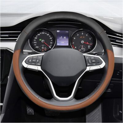 14.5″-15″ Car Steering Wheel Cover, Microfiber Leather Breathable Wheel Cover, Anti-Slip Lining Steering Wheel Covers, Car Accessories Interior Decoration for Women Men (Coffee)