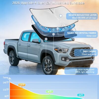for Toyota Tacoma 2016-2023 2024 2025 2026 Sun Shade Sunshade Windshield Cover – 4 Layers Front Window Shade Custom Fit Tacoma 2Dr 4Dr Pickup Sun Visor 240T Shade Blocks UV Rays Car Accessories
