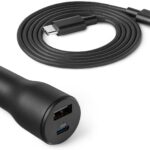 Amazon Basics Fast-Charging Car Charger, 1 USBC+1 USB-A, 32w, with one 3-Ft Straight Cable, Black