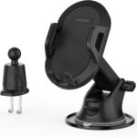 GRIFEMA Car Phone Holder for Dashboard, Windscreen or Vent, with Suction Cup and Vent Clip, Adjustable Arm and 360° Rotating, One-Touch Release, Fits 4-7.2 Inch Phones Including iPhone Samsung Pixel