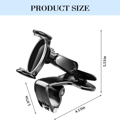 Car Dashboard Phone Holder, 360° Rotation Clip-on Vehicle Dash Cellphone Stand with Parking Number Plate, Auto Sun Visor & Rear View Mirror Mobile Phone Mount, Fits Most Smartphones