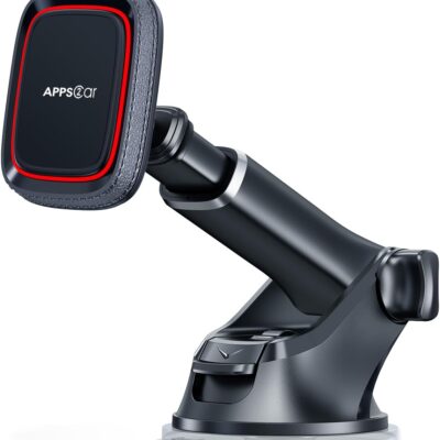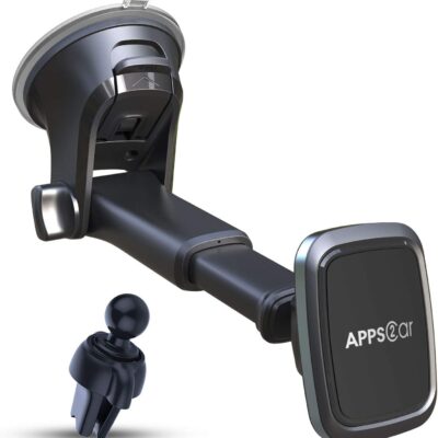 APPS2Car Magnetic Phone Mount for Car, Dashboard & Windshield Suction Cup Holder with Telescopic Arm, Requires Metal Plate (Included), Universal Fit for iPhone & Android Smartphones