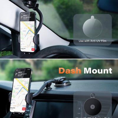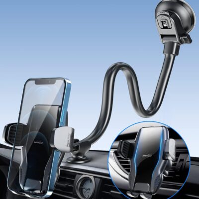 APPS2Car 13″ Gooseneck Phone Holder for Car Windshield Window Dashboard Vent, Cell Phone Mount for Car Truck with Strong Suction Cup, Anti-Shake Stabilizer – Compatible with Most Smartphones