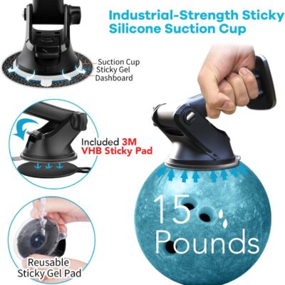 APPS2Car Suction Cup Phone Mount, Universal Phone Holders for Your Car Windshield/Dashboard/Window, Cell Phone Holder Car with Sticky Gel Pad, Compatible with iPhone, Samsung, All Cellphone