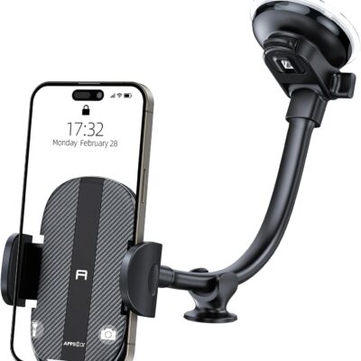 APPS2Car Cell Phone Holder for Car Dashboard Windshield Phone Mount for Car Long Arm Car Phone Holder Mount Strong Suction Cup Anti-Shake Stabilizer Compatible for iPhone, Samsung, All Smartphones