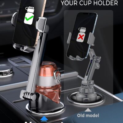 eSamcore Cup Holder Phone Holder, Unobstructed Cup Holder Phone Mount for Your Car Cupholder (2.5″-4″) with Flexible C-Shaped Base, 360° Swiveling, 0.8″ Deep Clamp Compatible with iPhone 4.7″–7″