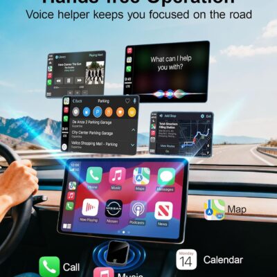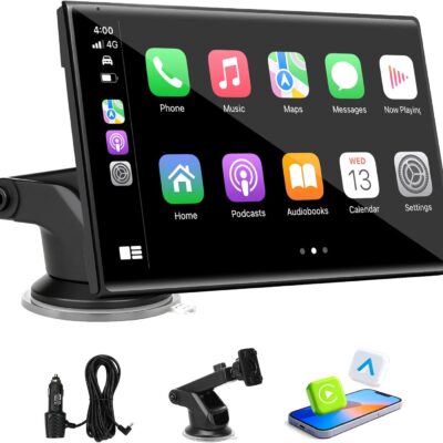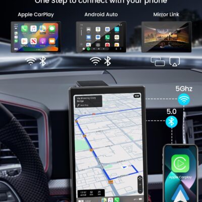 7″ Portable Wireless CarPlay Screen for Car – Apple CarPlay & Android Auto, HD Touch Screen Car Stereo, Bluetooth, GPS Navigation, Voice Control, Plug-and-Play with FM/AUX/Mirror Link (Black)