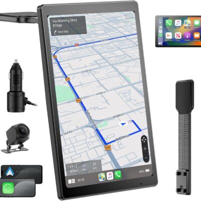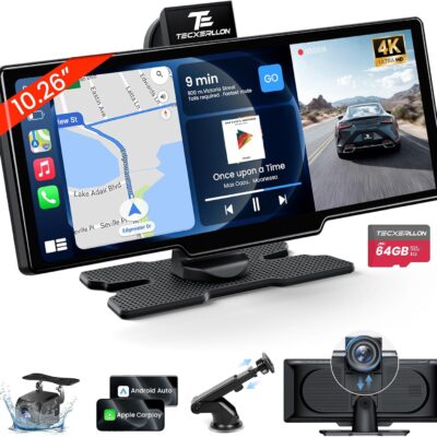 10.26” Portable Apple CarPlay Screen for Car with 4K Dash Cam & 1080P HD Backup Camera, Wireless Car Play & Android Auto with OTA,GPS Navigation, Airplay, Mirror Link