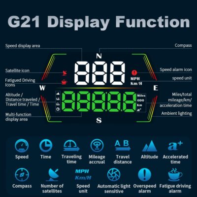M1 White Windshield Projection Heads Up Display, Digital GPS Speedometer with Speed, Travel Direction Function, and Overspeed Alarm, Fatigue Driving Alarm, Suitable for All Vehicles