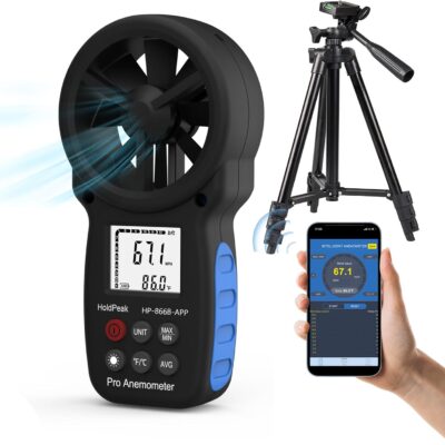HoldPeak Handheld Anemometer Bluetooth with Tripod, Digital Wind Speed Gauge Meter, Air Flow Velocity Temperature CFM Measuring Device for HVAC Outdoor Sailing Shooting Golf, 866B-APP