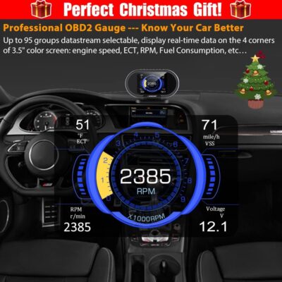 M3 Smart OBD2 Heads Up Display for Cars Shows Real Time Speed, Coolant Temp, Battery Voltage Distance Programmable Warnings for Overheat, Low Voltage, Fatigue Trouble Codes Wait.