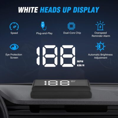 W2 White Heads Up Display for Cars Digital Speedometer for Car Speedometer for Car with speed, Triple Over-Speed Alarm, Auto Light Sensor, HUD Speedometer Universal Fit for All Vehicles