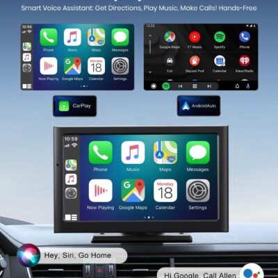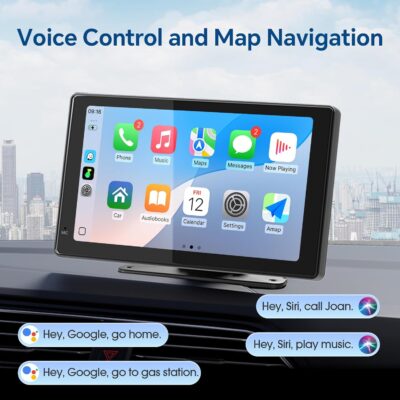 Portable Wireless Carplay Car Stereo, 7″ HD Touchscreen for Car with Apple CarPlay & Android Auto with Backup Camera, GPS, Bluetooth, Voice Control, Mirror Link, FM, AUX, Universal Fit