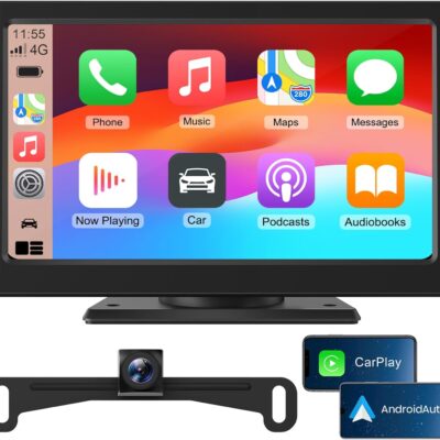 Portable Carplay Screen for Car, 7″ Wireless Carplay & Android Auto with Bluetooth, HD Backup Camera, GPS Navigation, Siri, FM, AUX, Mirror Link for All Vehicles