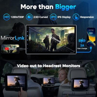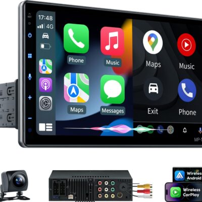 PLZ 10.1″ Wireless Single Din Car Radio Stereo with Apple Carplay Android Auto Touch Screen, Car Play Audio Receivers Headunit, Bluetooth 5.3, Backup Camera, 240W, 2 Subwoofers, Navigation, FM/AM, SWC