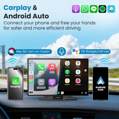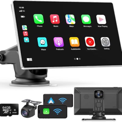 Portable Carplay Screen for Car, 10″ Wireless Carplay & Android Auto, OTA Updates, Car Play Touchscreen with 1080P Backup Camera,GPS Navigation,Voice Control,5.0 Bluetooth (10inch)