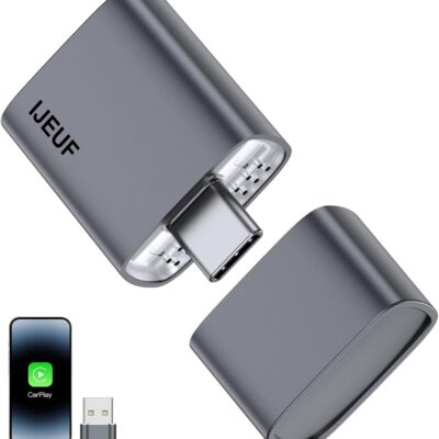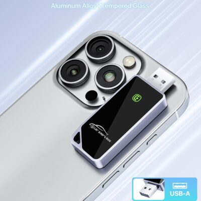 Wireless CarPlay Adapter for iPhone – Plug-and-Play with USB-A Extension & USB-C Connector, Zero Latency, Compatible with 2016+ Cars & iOS 10+