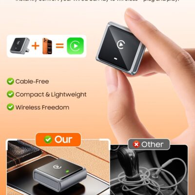 Wireless CarPlay Adapter for iPhone 2026 Upgrade – Plug & Play Convert Wired to Wireless Compatible with Cars 2016+, iOS 10+ (USB A/USB-C)