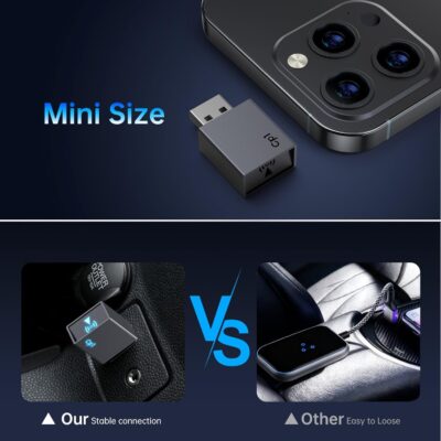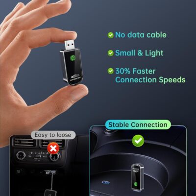 Wireless Carplay Adapter for iPhone – Plug & Play Convert Wired to Wireless CarPlay for Cars from 2016 and iOS 10+, No Latency Mini USB Type A Black