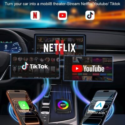 Wireless Carplay Adapter for iPhone Ai Magic Box with Netflix/YouTube Supports TF/Card Dongle Plug and Play Easy Setup Carplay & Android Auto Video Entertainment for iOS 10+ Radio Accessories